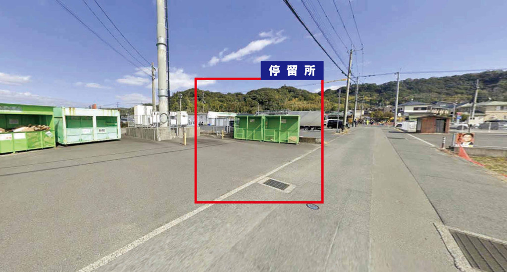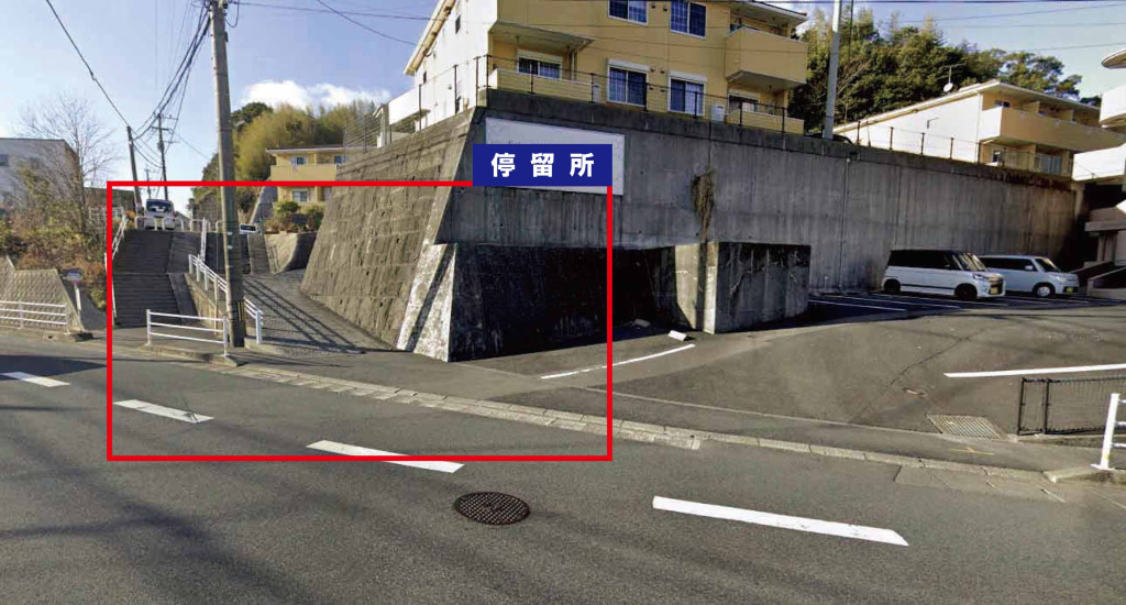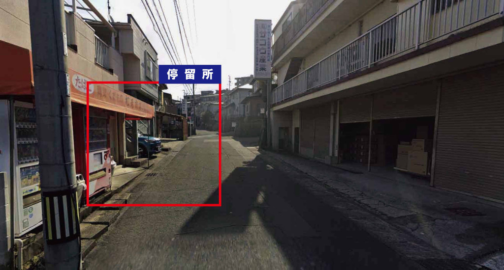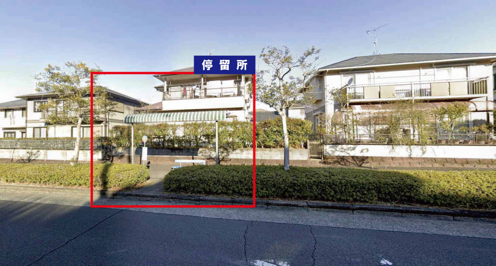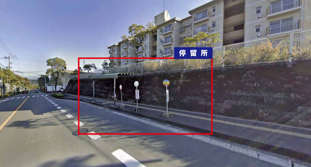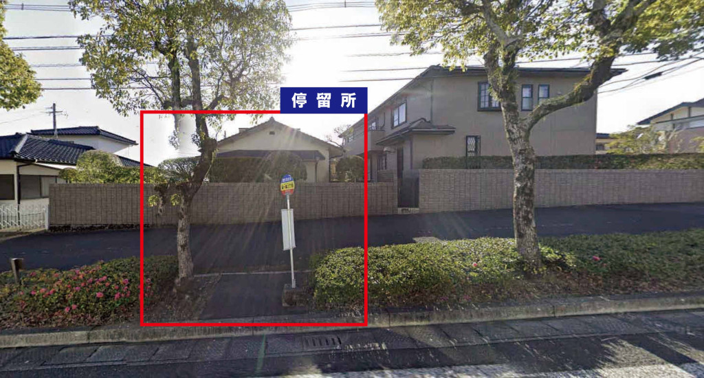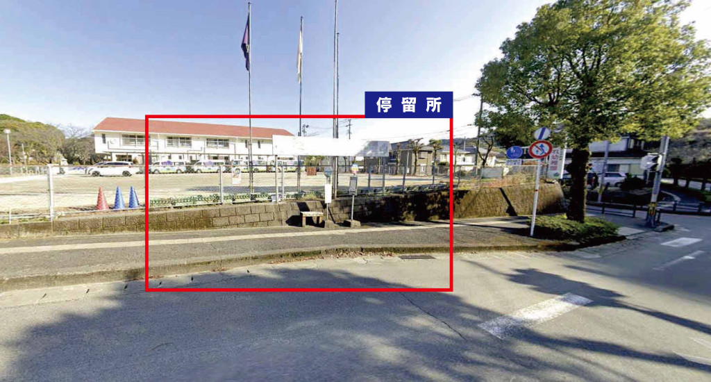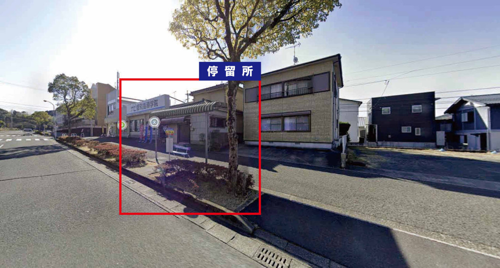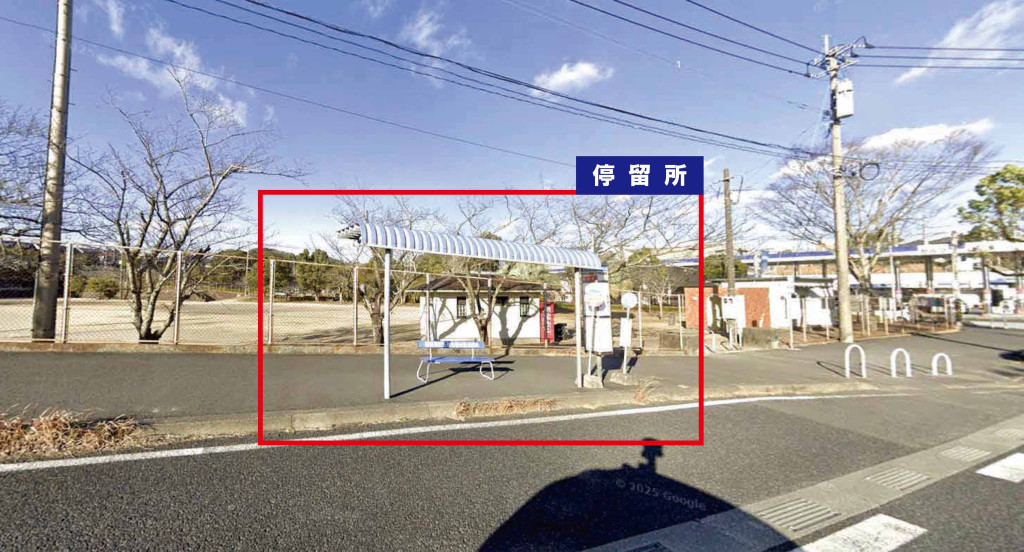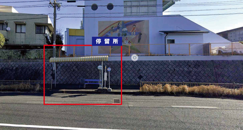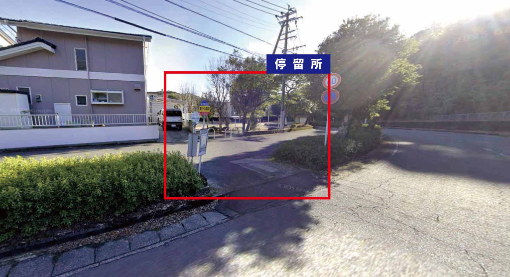 毎月第1・第3・第5 水曜日午後運行「星ヶ峯・皇徳寺・山田・広木線」の停留所の写真と地図情報になります。乗車の際は画像赤枠の所でお待ちください。