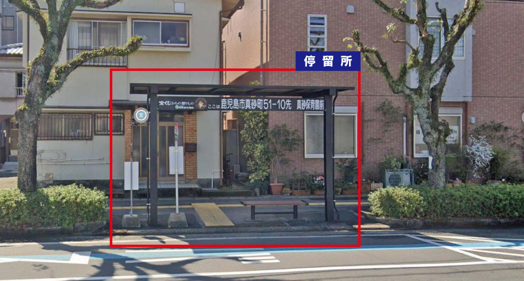 真砂・三和町・鴨池新町・鴨池線 停留所写真・地図 真砂・三和町・鴨池新町・鴨池線 停留所写真・地図 毎週土曜日午後運行「真砂・三和町・鴨池新町・鴨池線」の停留所の写真と地図情報になります。 乗車の際は画像赤枠の所でお待ちください。 ★真砂保育園前バス停(保育園向い側) ★鹿児島銀行真砂支店前 ★田畑建設前(鴨池小学校向い側) ★三和中央バス停(公園側) ★三和町バス停(屋根無しバス停側) ★緑地公園前バス停(屋根無し自販機側) ★太陽の子幼稚園前(鴨池ハイム会館向い側) ★プロパンガス会館横(瀬戸歯科立て看板前) ★県庁前バス停(自治会館側ファミマ前) ★きしゃばバス停(キクマンション前)