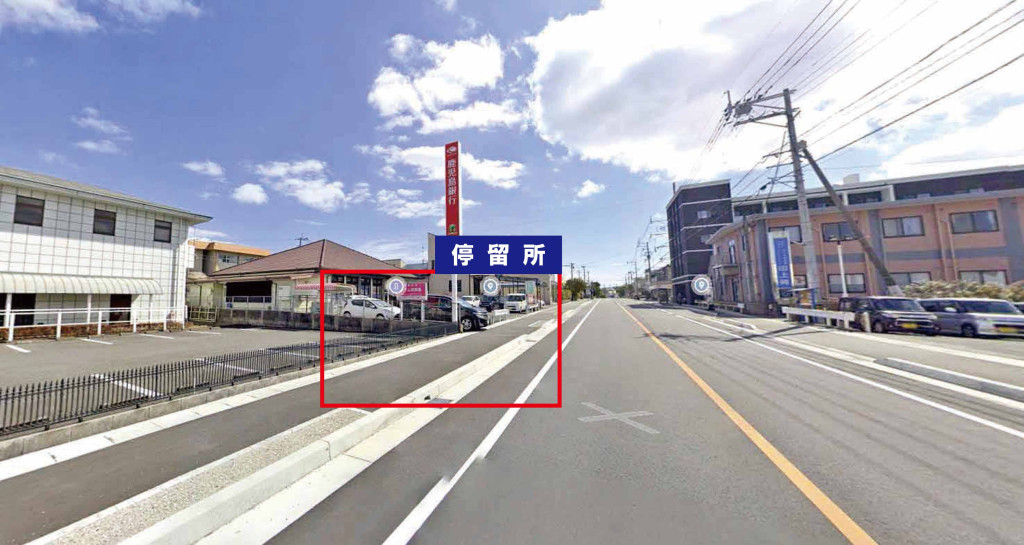 西陵線停留所写真・地図 西陵線 停留所写真・地図 毎月第1・第3・第5火曜日午後運行「西陵線」の停留所の写真と地図情報になります。 乗車の際は画像赤枠の所でお待ちください。 ★鹿児島銀行西陵支店前 ★西陵6丁目バス停(下り側) ★南日本新聞西陵販売所向い側(2丁目) ★西陵2丁目バス停(ファミリーマート側) ★コープ西陵店向い側(駐車場出入口向い側付近) ★西陵第11公園前(西陵3丁目) ★西陵4丁目(東郷建設前) ★西陵5丁目バス停(擁壁側) ★西陵7丁目バス停(上り側) ★西陵8丁目バス停(上り側・公園向い)