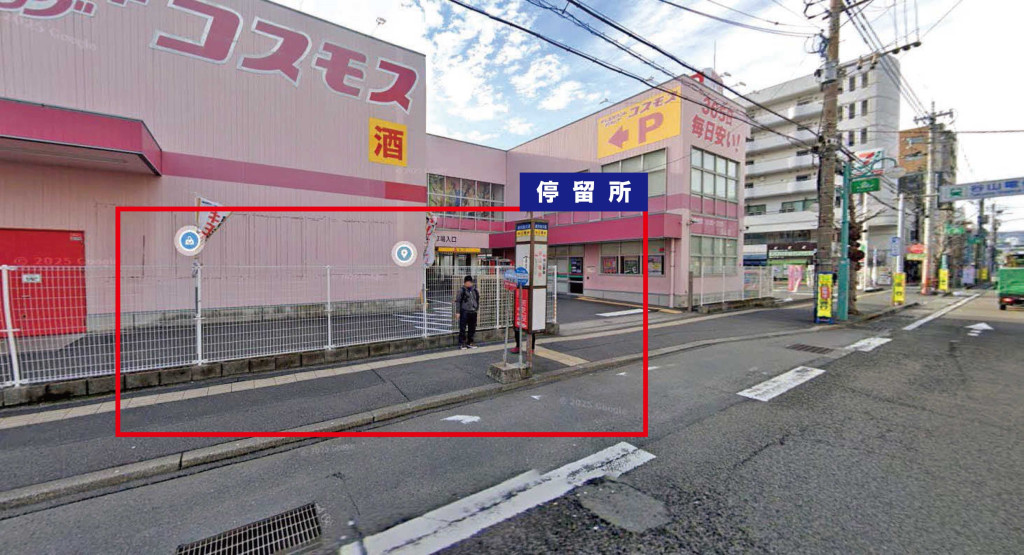 小松原・谷山・東谷山線停留所写真・地図 小松原・谷山・東谷山線 停留所写真・地図 毎月第1・第3・第5 金曜日午後運行「小松原・谷山・東谷山線」の停留所の写真と地図情報になります。 乗車の際は画像赤枠の所でお待ちください。 ★タイヨー上塩谷店(向い側) ★谷山電停前バス停(コスモス側) ★谷山駅前バス停(昴受験ラサール谷山側) ★谷山支所前(ろうきんATM前辺り) ★コープ南谷山店前(花屋 横 緑舗装歩道付近) ★南高校前バス停(鹿銀西谷山支店側) ★永田バス停(KOGU 自転車屋側) ★高見バス停(谷山納骨堂側) ★脇田中央公園前(産婦人科カド付近) ★日之出町バス停(上り側) ★紫原3丁目バス停(上り側)