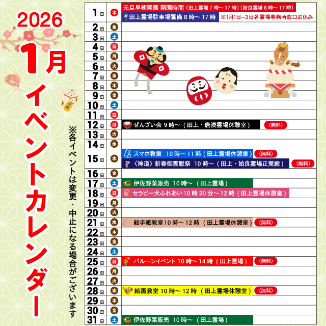 1月1日~3日の期間中、各霊場事務所窓口業務はお休みとなります。